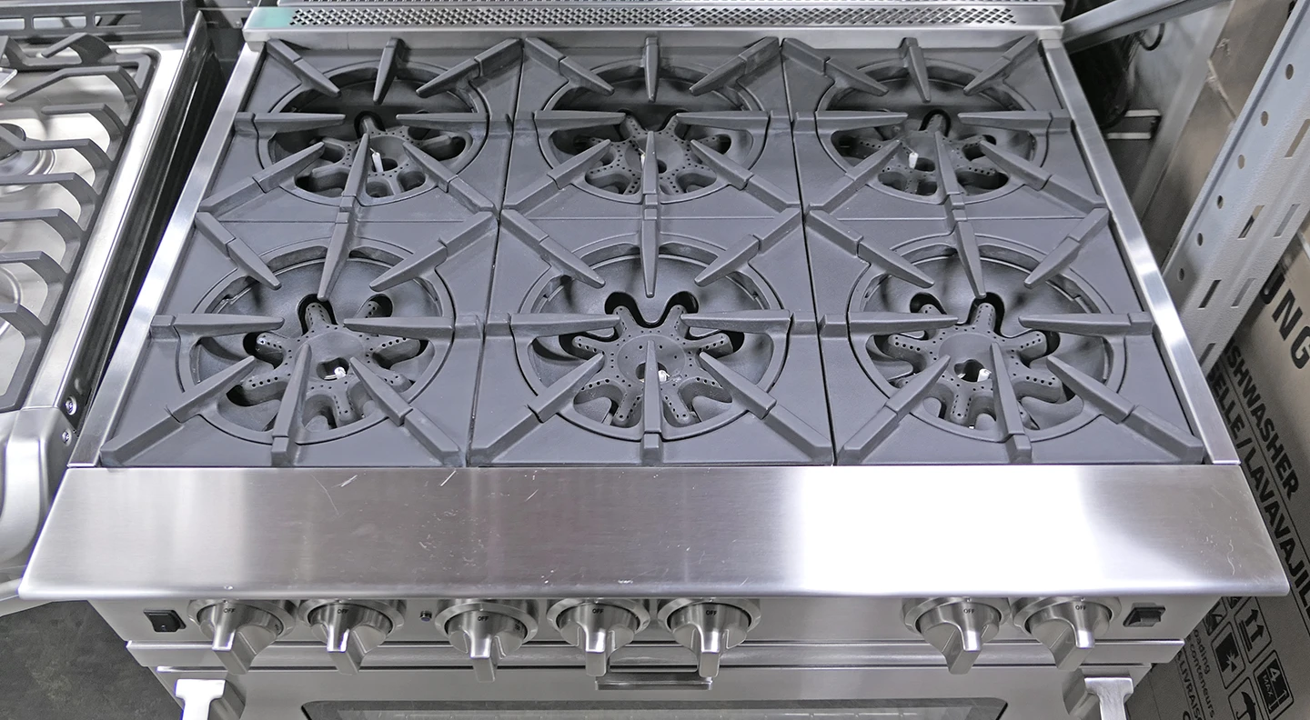 36 Inch Freestanding Professional Gas Range with 6 Open Burners, True European Convection, Innovative PowR Oven™, and Gentle 130° Simmer Burner: Stainless Steel, Stainless Steel Trim; Natural Gas