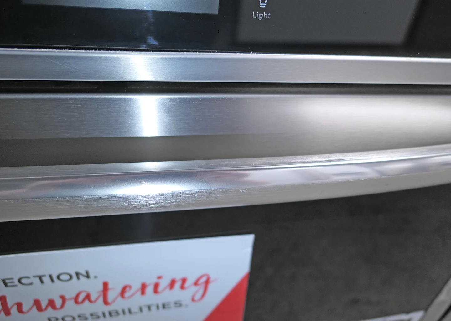 • There are raised spots in the stainless trim on the control panel and door as shown.