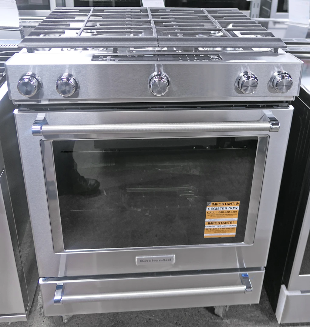 30 Inch Slide-in Dual Fuel Range with 5 Sealed Burners, 7.1 cu. ft. Even-Heat™ True Convection Oven, 8,000 BTU Oval Burner, Baking Drawer, AquaLift® Self Clean, Sabbath Mode, Star K Certified and ADA Compliant