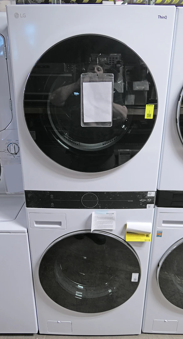 27 Inch Smart Electric Single Unit WashTower with 4.5 cu. ft. Washer Capacity, 7.4 cu. ft. Dryer Capacity, TurboWash™360° Technology, Allergiene™ Wash Cycle, LG ThinQ® Technology, AI Fabric Sensor, and ENERGY STAR® Certified: White