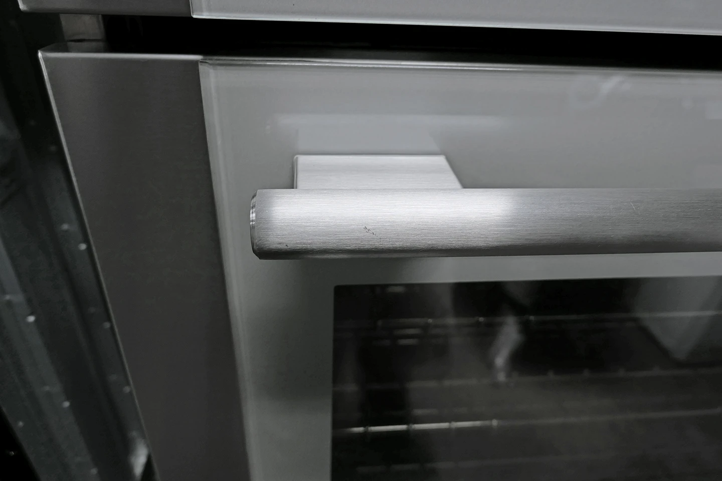• There are scratches to the stainless trim on the doors as shown.
